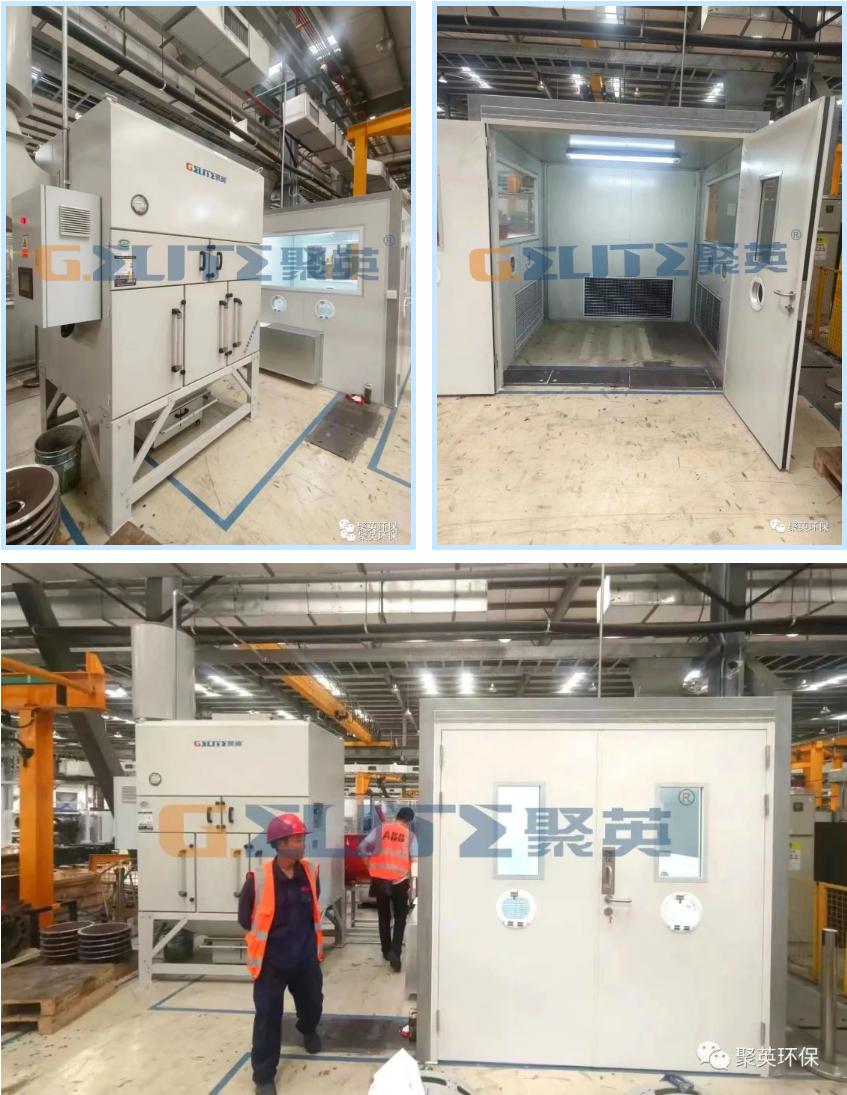 根據(jù)業(yè)主的要求需創(chuàng)建智能化、綠色環(huán)保車間,對工件的自動化打磨工作房進(jìn)行負(fù)壓運(yùn)行,同時打磨房內(nèi)的粉塵經(jīng)密閉抽吸收集后,通過管道進(jìn)入高效粉塵凈化裝置,納米級金屬粉塵經(jīng)除塵裝置處理后排入管道煙囪。經(jīng)處理后的粉塵顆粒污染物排放指標(biāo)需滿足環(huán)保要求,同時也達(dá)到職業(yè)衛(wèi)生排放標(biāo)準(zhǔn)。