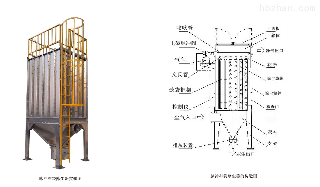 布袋式除塵器屬于環(huán)保設(shè)備的一種,作用是大氣污染治理,過濾粉塵廢氣。主要由上箱體(凈氣室)、中箱體(塵氣室)、灰斗、脈沖清灰系統(tǒng)、濾袋、濾袋骨架、進出風(fēng)口、壓差計、檢修人孔、卸灰裝置、和pLc控制儀等組成。